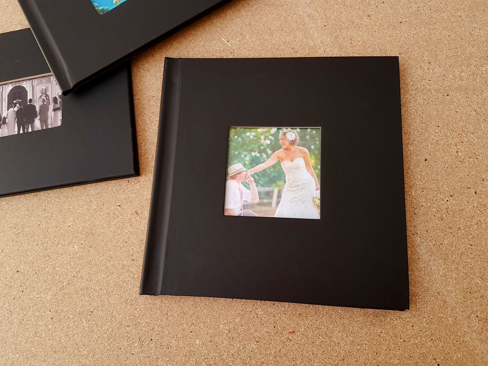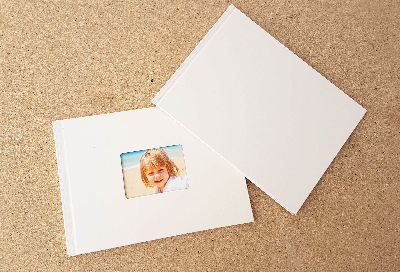 Βιβλία φωτογραφιών με μονόχρωμο σκληρό εξώφυλλο με τρύπα «παράθυρο», απ’ όπου φαίνεται η φωτογραφία της πρώτης εσωτερικής σελίδας. Οι εσωτερικές σελίδες τυπώνονται σε μαλακό ημιγυαλιστερό χαρτί illustration 170gr. Αριθμός Εσωτερικών σελίδων: 24 έως 64 σελίδες